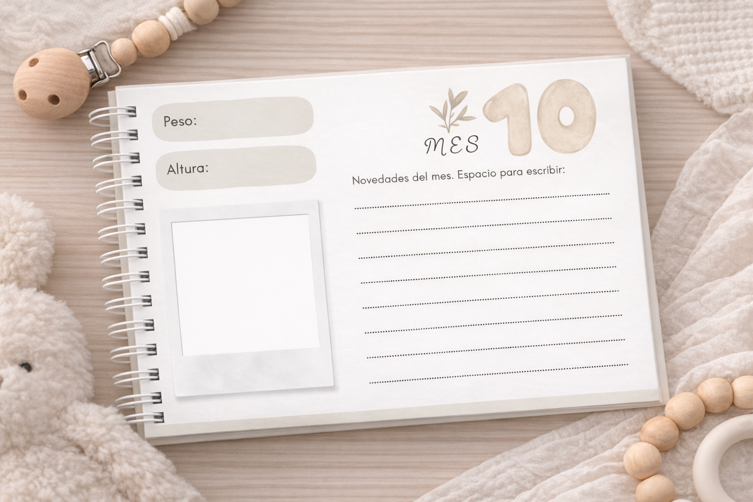 Este cuaderno es un espacio para guardar las primeras veces, los momentos especiales y los recuerdos que acompañan el primer año de vida.